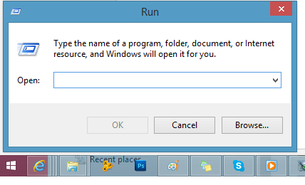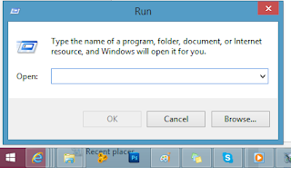 1. pertama buka di start cari aja namanya run atau bisa menggunakan shortcut di keyboard dengan jalan pintas tombol Windows + R. beriku SreenShootnya. Untuk tampilannya menggunakan WIn 8.1 :)